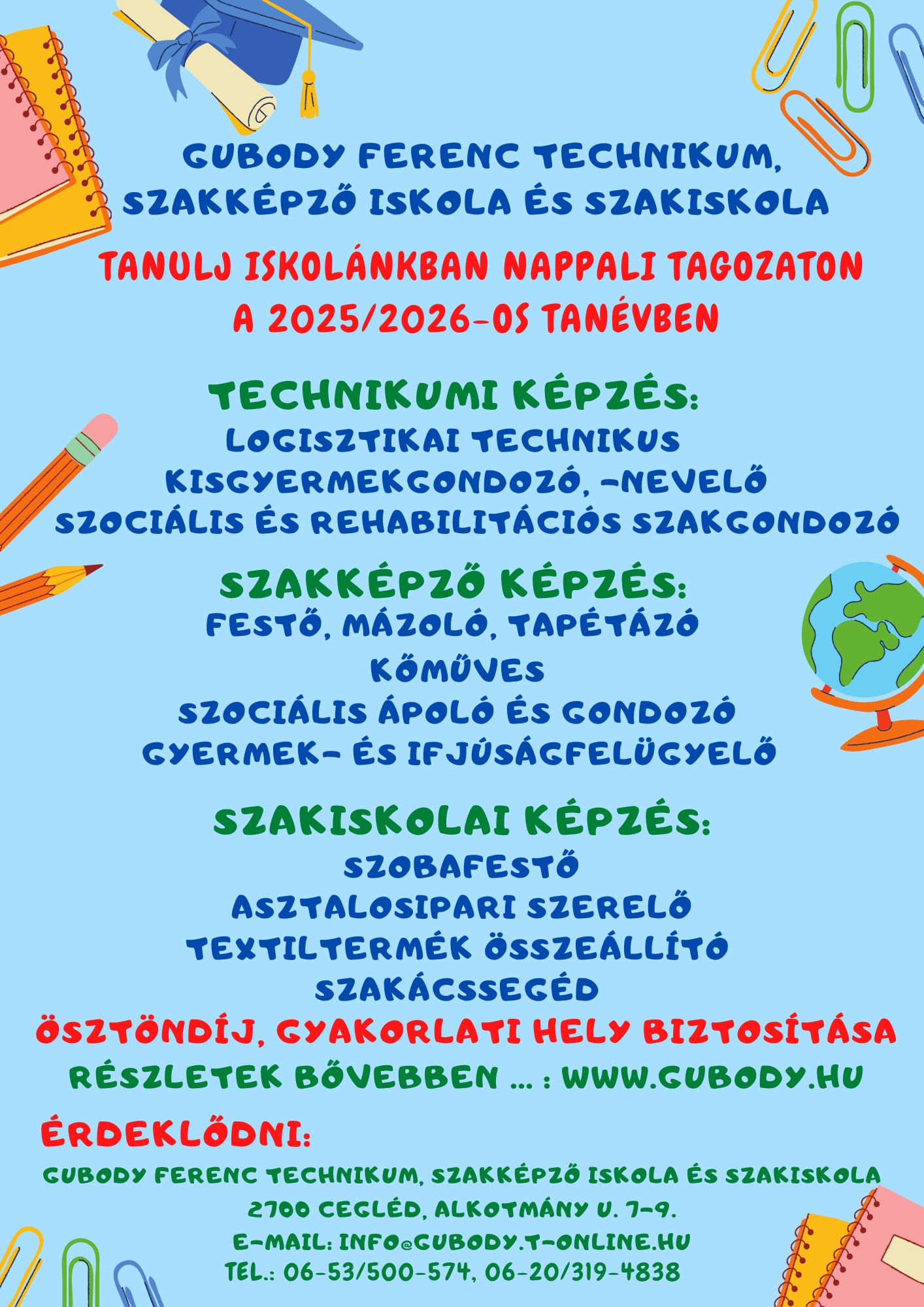 Képzéseink a 2025/2026-os tanévre nappali és esti tagozaton